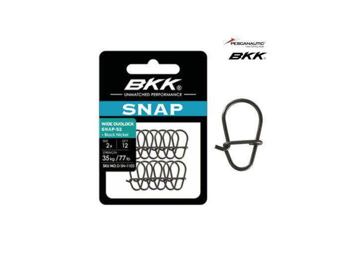 The BKK Wide Duolock Snap-52 is designed with an extra-wide arc to give lures maximum freedom of movement, making it ideal for crankbaits and other lively baits. Built from hardened stainless steel, it combines exceptional strength with high spring force to ensure reliability even under heavy pressure. The black nickel coating minimises light reflections, keeping the snap discreet in clear waters and effective against cautious, experienced predators.