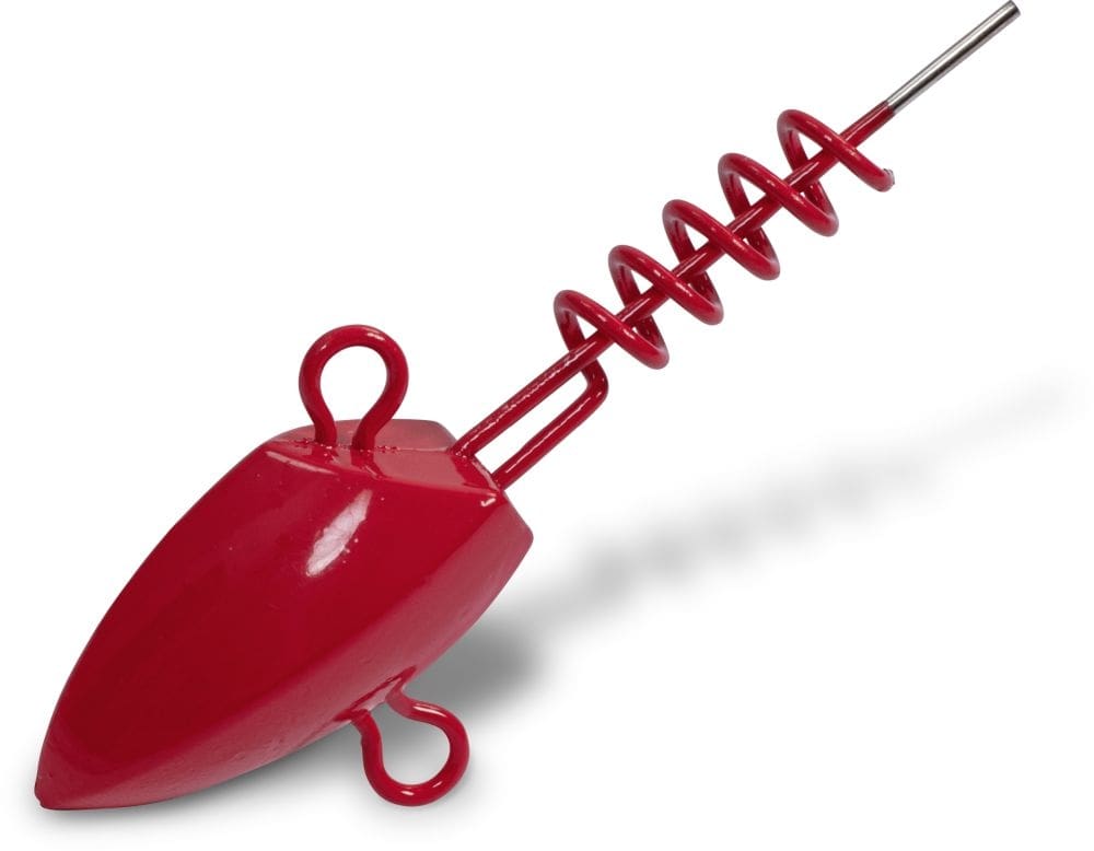 Black Cat’s Jig Head Red is a catfish jig head with screw spiral for use with all common softbaits. The special shape of the head allows the lure to glide straight through the water when reeling back in and sink quickly. The jig head can be used for casting and vertical fishing. On the jig head there is a strong eye for mounting the main line and stinger/