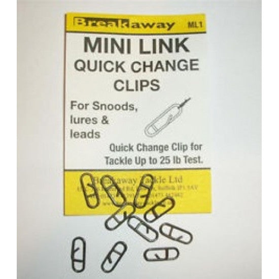 The Mini Link is a small and lightweight version of the fastlink. It can be used as a connector for lures, as a quick change link for snoods and hook lengths or as a lead link on light set ups.