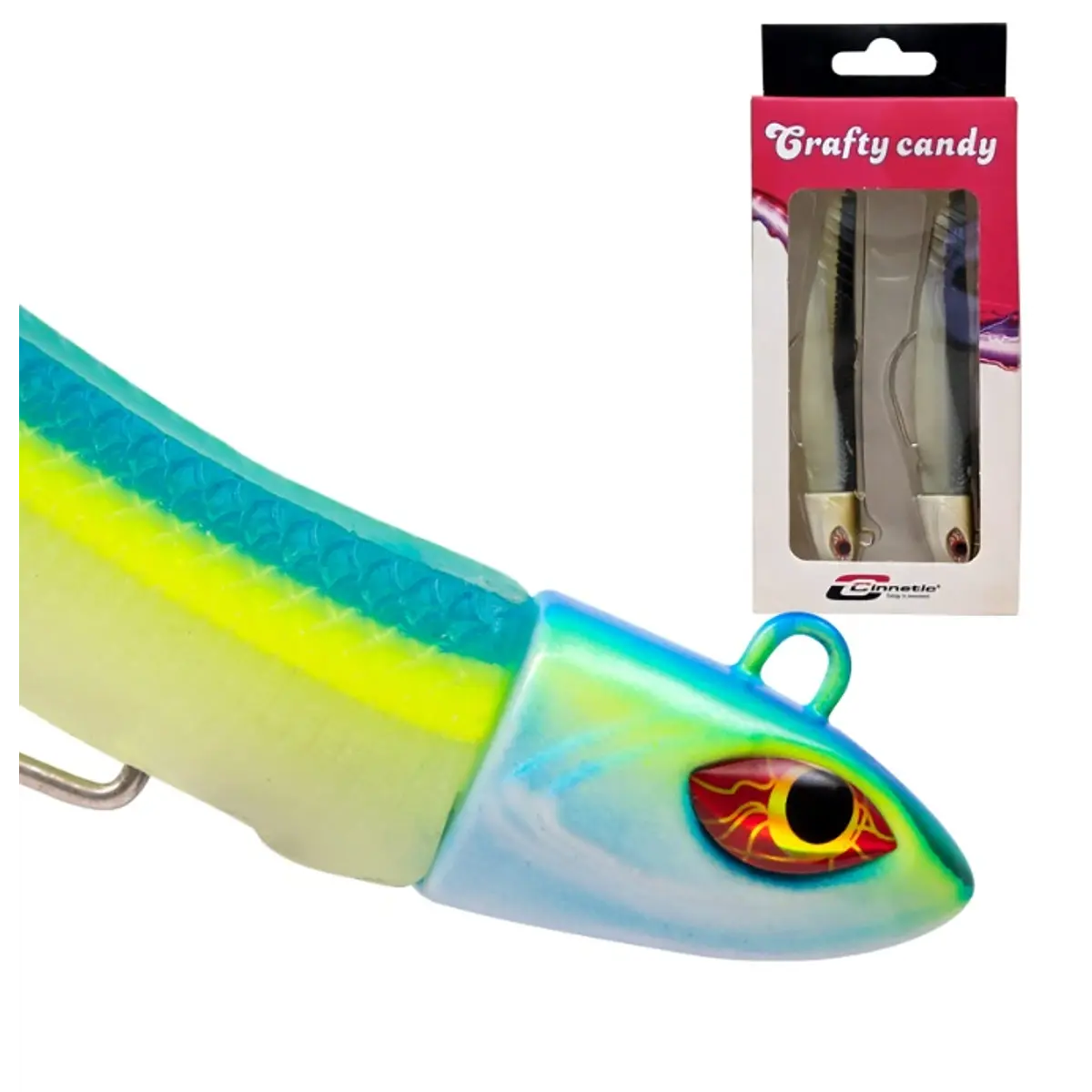 Crafty Candy belongs to the hybrid soft lures family, since it combines a metal jig head with a vinyl tail. The very soft