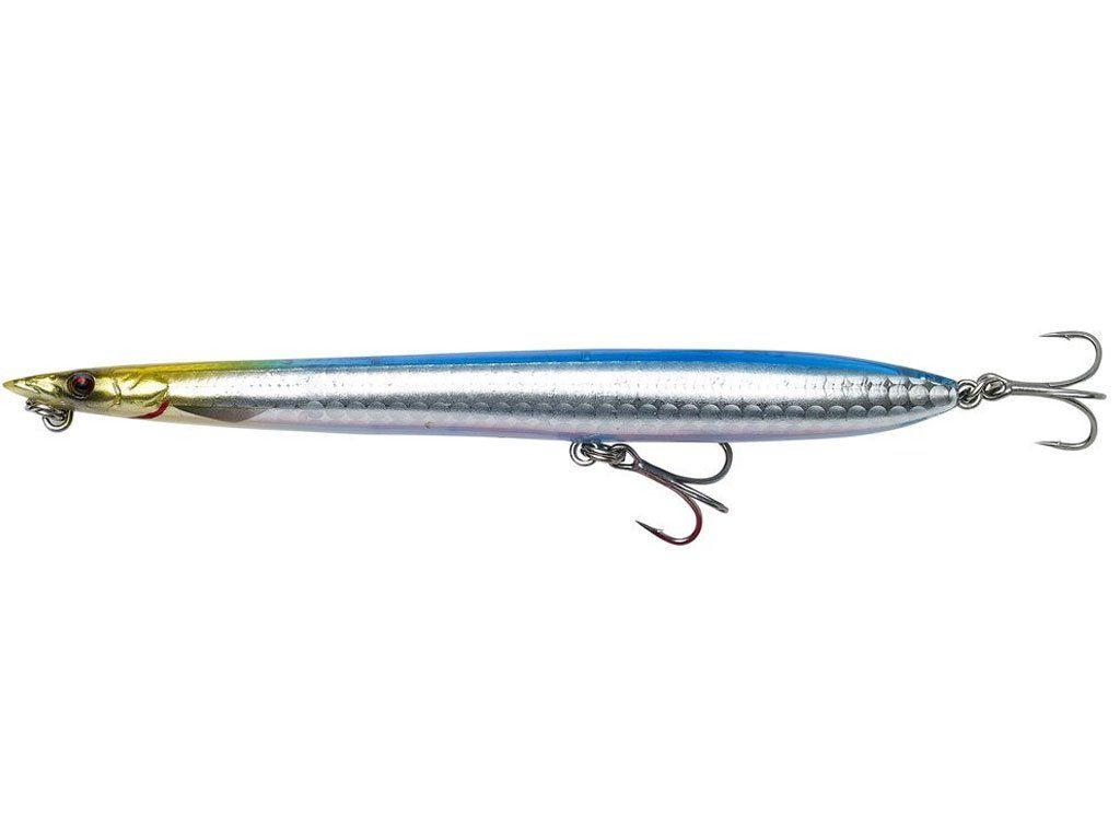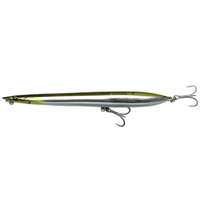 Based on the perfect 3D Scan of a real Sandeel. The long slender Strong Hard ABS body has the most incredible side-to-side action on the twitch and a slim S-curve action on straight retrieve. The Floating version has a horizontal balance. slightly keeping the head up on the spin stop – creating the perfect wounded baitfish profile. The long cast design is silent – the perfect top water lure for more wary predator fish