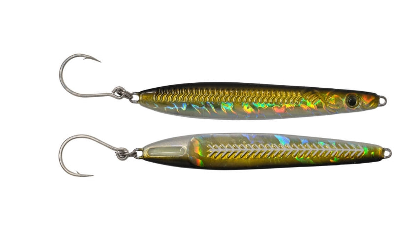 Designed around the well established Pathfinder metal lure, this lure has been made slightly shorter and wider than the original. It keeps the same design concept with the thickness at the back, which helps to create a realistic and attractive lure to entice predatory species to feed. The design of the Roadkill ensures that it will cast like a bullet. It has a glow in the dark “hit spot” next to the hook for that extra pulling power. The Sandeel and Midnight colours have glow in the dark spines, the Bloody Pearl and Bloody Mackerel versions have red, bleeding spines. All lures are fitted with HTO Inline Single hooks.