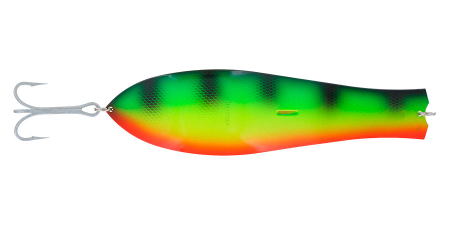 It is also not unusual to see a pike attacking one of its own kind. To catch this crocodile of Finnish waters, we have developed this 18 centimetres long super-sized spoon. The giant Professor is at its best when used for casting and trolling in the spring and late autumn.