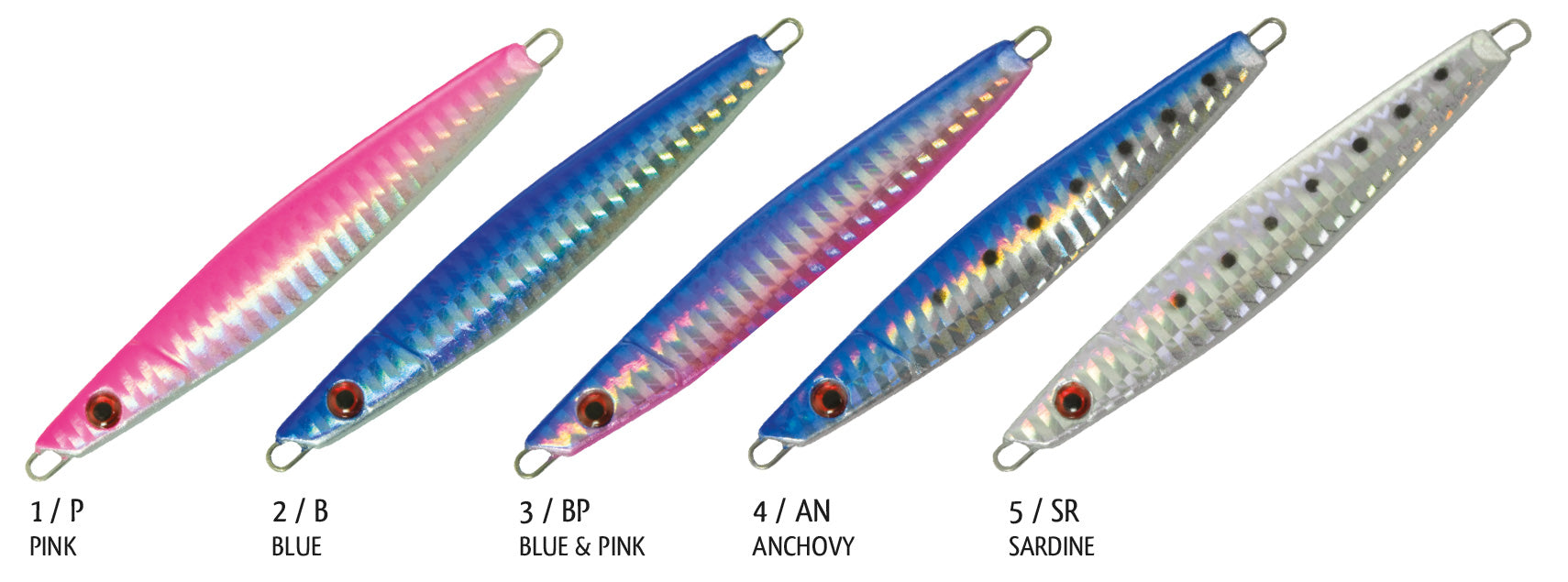Asami Jigs also have excellent action in water and can be retrieved steady or slowly jigged. Ideal for fishing from the shore, from piers or rocks, as well as for fishing offshore close the surface or jigging. Seabass, jacks, trevallies and barracudas are between the spèecies that love this lures. All jigs come with original VMC hooks connected by a forged split ring for maximum strength.