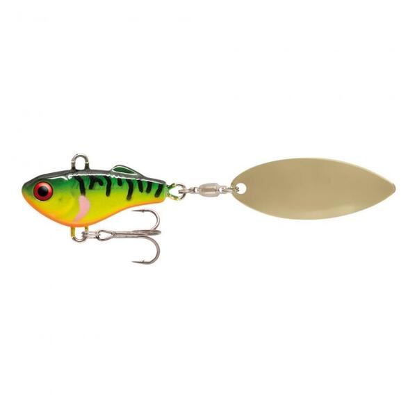 This lure has been specifically designed for asp fishing and have been built with great accuracy. The fulcrum of this bait is the heavy lead body which allows super long casting. Its shape is also perfect to be retrieved very fast, and easily keeps a vertical position. In case of use from boat, this lure keeps the depth very well, thanks to the low center of gravity and to the dorsal position of the line connections eye. The tail willow spoon is adding attractive vibrations and flashes that will stimulate the attack from predators, as it spins quite well, due to high speed BB swivel assistance.