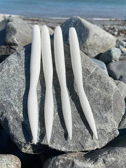 They have a slender body with a hook slot along the belly leading to a bulbas tail. These have accounted for pollock, mackerel, wrasse and bass to name a few in this size. These are a great addition to any lure anglers tackle box. There is also a 3.25inch 1.5g and 5.25inch 7g version available in these.