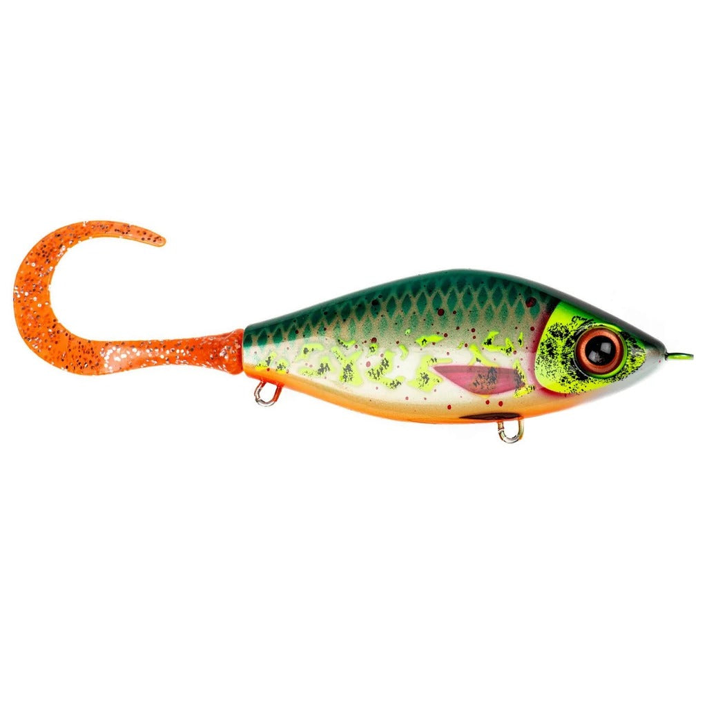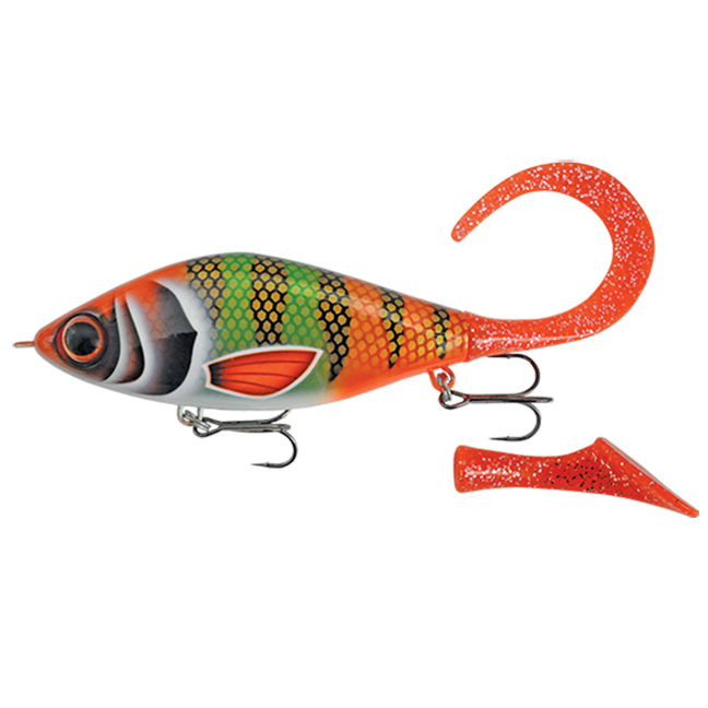 In addition to the obvious good looks, the Guppie incorporates some unique design features that make it a top fish producer. The Guppie's compact shape ensures that hook coverage is always maximized. While the convex body shaping from the top to the belly exposes the hook points for better hook sets. The body profiling also adds extra flash and belly roll. The Guppie RT (RT stands for "Rubber Tail") adds an extra dimension. The Guppie RT features an innovative spring screw at the tail of the bait. Change the dynamics of the bait simply by screwing on or off one of the four optional tail types. Choose between the standard curly tail, one of the two paddle-tail variations or go subtle with the fish tail.
